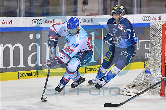 Beschreibung: Andrew Desjardins (Nr.84 - Adler Mannheim) und Tim Wohlgemuth (Nr.33 - ERC Ingolstadt), ERC Ingolstadt gegen Adler Mannheim am 28.12.2019 in Ingolstadt,