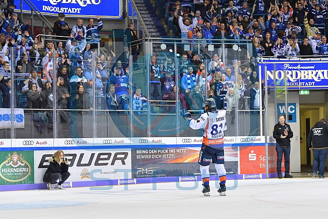 • Beschreibung:  Kristopher Foucault (Nr.81 - ERC Ingolstadt) wird nach dem Spiel von den Fans gefeiert, ERC Ingolstadt gegen Schwenninger Wild Wings am 23.02.2020 in Ingolstadt, Foto: Johannes TRAUB / JT-Presse.de